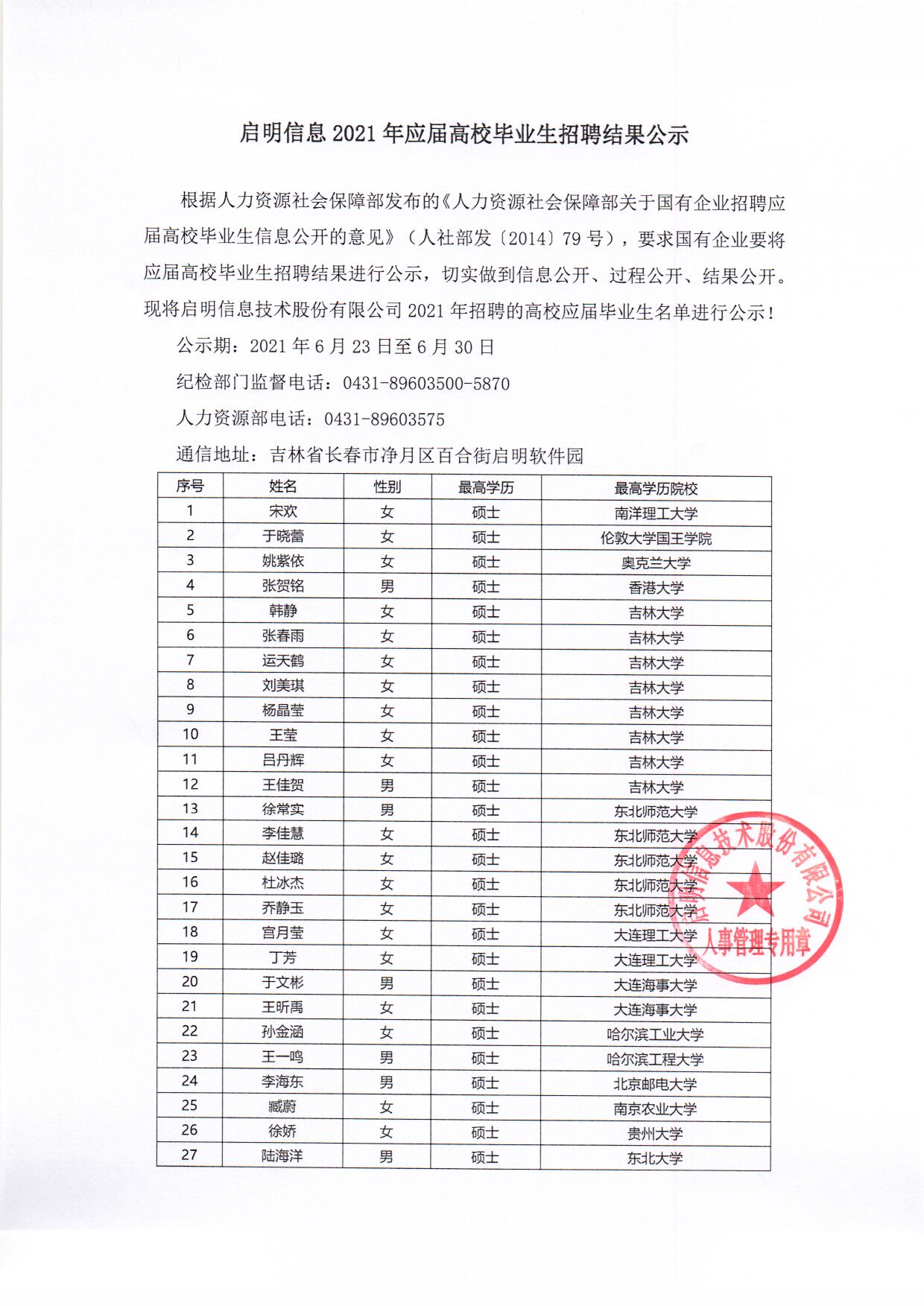 米兰·(milantiyu)信息2021年应届高校毕业生招聘结果公示