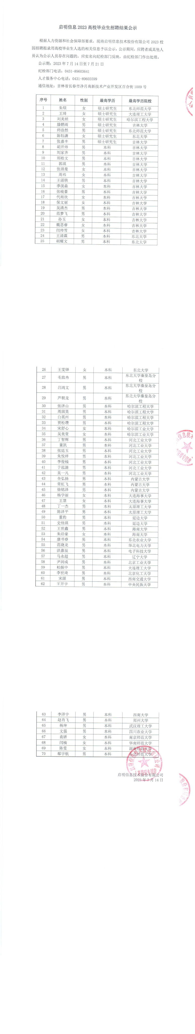 米兰·(milantiyu)信息2023高校毕业生招聘结果公示