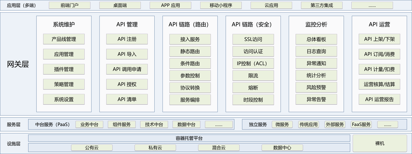 为各系统或服务提供监控、限流、安全等管控功能,避免反复投资、重复建设